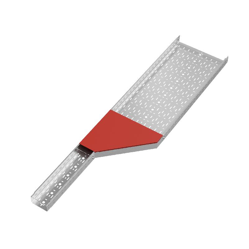 Для использования с элементом, позволяющим выполнить переход секций кабельного лотка с ширины 150 мм на 500 мм, разработана крышка переходника правого серии "PLUS". Изделие защищает кабель от повреждений и попадания посторонних предметов в секцию. Изделие выполнено из нержавеющей стали марки AISI304 – материала устойчивого к коррозии, высоким температурам и агрессивным средам. Используется на предприятиях пищевой и медицинской промышленности, химических заводах, в морских и прибрежных зонах, в соответствии с ГОСТ 15150-69. При стыковке изделий, крышка фиксируется легким защелкиванием. В случае необходимости получить доступ к кабелю, элемент легко снимается. Фасонная секция – часть специально разработанной системы для монтажа кабельных трасс любой сложности на объектах промышленного, гражданского и коммерческого назначения.