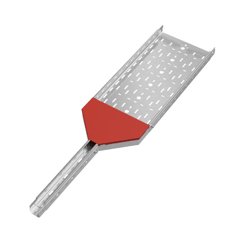 Крышка переходника центрального серии "PLUS" предназначена для использования с элементом, позволяющим выполнить переход секций кабельного лотка с ширины 50 мм на 300 мм. Изделие защищает кабель от повреждений и попадания посторонних предметов в кабельный короб. Элемент выполнен из стали и оцинковано по методу Сендзимира. Предназначен для применения в местах предпочтительно с сухим климатом, внутри помещений и в слабоагрессивных средах, в соответствии с ГОСТ 15150-69. При стыковке изделий, крышка фиксируется легким защелкиванием. В случае необходимости получить доступ к кабелю, элемент также легко снимается - без применения специальных инструментов. Фасонная секция – часть специально разработанной системы для монтажа кабельных трасс любой сложности на объектах промышленного, гражданского и коммерческого назначения.