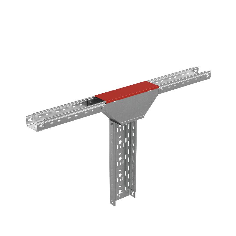 Для защиты кабельной трассы от внешних воздействий и механических повреждений, используется крышка на вертикальный т-ответвитель переходник с разворотом трассы на 90 градусов, в котором нижняя часть больше исходной. Модель фасонной секции серии "PLUS" такой модификации рекомендовано использовать для т-ответвителя соответствующей серии шириной 150 мм. Элемент выполнен из нержавеющей стали марки AISI304 – материала устойчивого к коррозии, высоким температурам и агрессивным средам. Используется на предприятиях пищевой и медицинской промышленности, химических заводах, в морских и прибрежных зонах, в соответствии с ГОСТ 15150-69. Крышка фиксируется защелкиванием, а при необходимости ее можно снять, чтобы получить доступ к кабелю. Изделие является частью системы для конструирования кабельных трасс любой сложности на объектах промышленного, гражданского и коммерческого назначения.