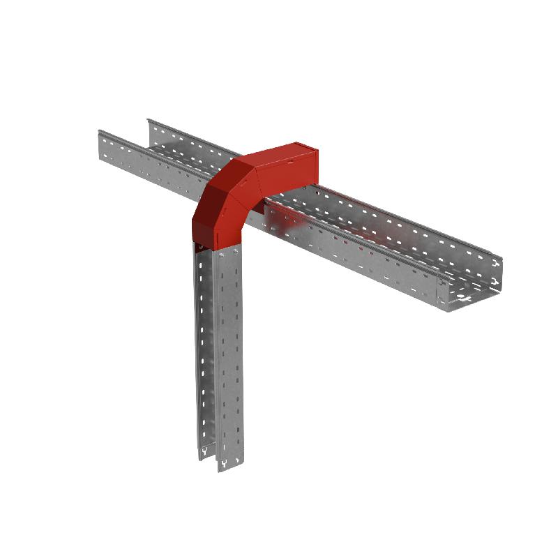 Элемент является частью системы для конструирования кабельных трасс любой сложности на объектах промышленного, гражданского и коммерческого назначения. Т-ответвитель предназначен для создания ответвления кабельной трассы, разворачивая при этом открытую часть лотка вокруг своей оси на 90 градусов. В комплекте есть крышка для секции, которая защищает уложенный кабель от механических повреждений, попадания мусора и пыли. Элемент оцинкован методом горячего погружения согласно ГОСТ 9.307-89 и используется для монтажа в помещениях с высокой влажностью и низкой загрязненностью, под открытым небом и в слабокоррозийной среде, в соответствии с ГОСТ 15150-69. Изделие используется для организации плавного поворота и перехода трассы с исходной ширины лотка 200 мм на ширину 150 мм. Фасонная секция предупреждает повреждение кабеля при прокладке и позволяет рационально использовать внутренний объем.