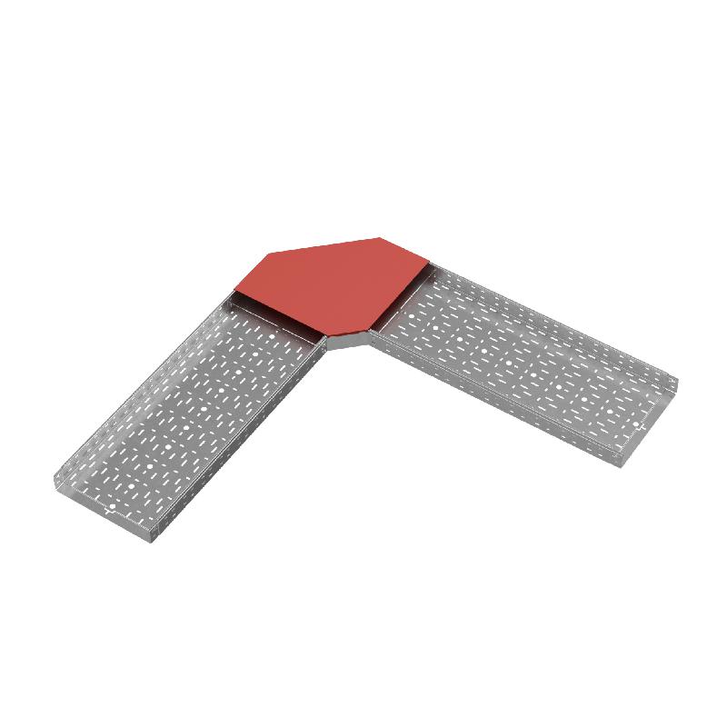 Для угла горизонтального 90 градусов разработана крышка серии "PLUS", которая защищает кабельную трассу от внешних воздействий и механических повреждений. Модификация фасонной секции разработана для угла шириной 400 мм, позволяющего изменить направление кабельной трассы в горизонтальной плоскости под прямым углом. Изделие оцинковано методом горячего погружения согласно ГОСТ 9.307-89 и используется для монтажа в помещениях с высокой влажностью и низкой загрязненностью, под открытым небом и в слабокоррозийной среде, в соответствии с ГОСТ 15150-69. Крышка фиксируется защелкиванием, а при необходимости ее можно снять, чтобы получить доступ к кабелю. Изделие является частью системы для конструирования кабельных трасс любой сложности на объектах промышленного, гражданского и коммерческого назначения.