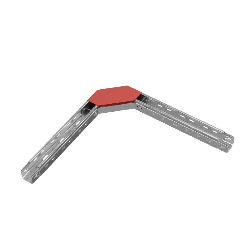 Для угла горизонтального 90 градусов разработана крышка серии "PLUS", которая защищает кабельную трассу от внешних воздействий и механических повреждений. Модификация фасонной секции разработана для угла шириной 50 мм, позволяющего изменить направление кабельной трассы в горизонтальной плоскости под прямым углом. Изделие оцинковано методом горячего погружения согласно ГОСТ 9.307-89 и используется для монтажа в помещениях с высокой влажностью и низкой загрязненностью, под открытым небом и в слабокоррозийной среде, в соответствии с ГОСТ 15150-69. Крышка фиксируется защелкиванием, а при необходимости ее можно снять, чтобы получить доступ к кабелю. Изделие является частью системы для конструирования кабельных трасс любой сложности на объектах промышленного, гражданского и коммерческого назначения.