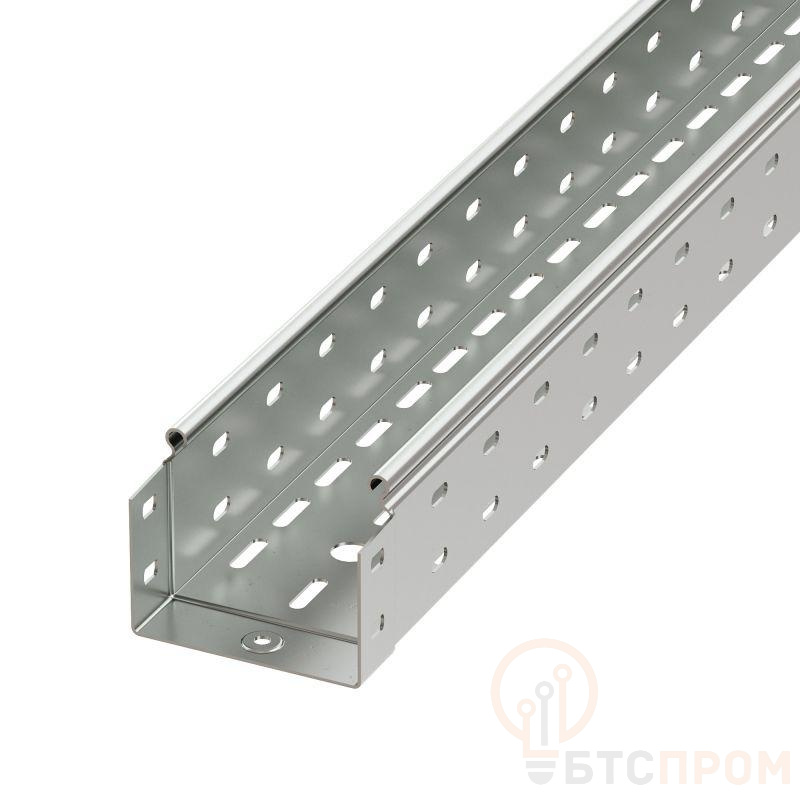 Перфорированные листовые лотки ДКС применяются для прокладки кабеля как в помещении, так и на открытом воздухе. Лотки отличаются высокой несущей способностью – подформовка, производимая при производстве этой продукции, создает дополнительное ребро жесткости, что увеличивает несущую способность системы до 54%. Перфорация сокращает вес конструкции. В лотках имеются отверстия для отвода кабеля. Степень пыле- и влагозащиты перфорированных лотков – IP 10 при использовании крышек, входящих в состав системы. Метод соединения "мама-папа" применяемый для системы, существенно сокращает время монтажа и создает непрерывный контур. Конструктив листовых лотков ДКС предупреждает повреждение кабеля при прокладке. Высота лотка – 80 мм, ширина – 100 мм, длина – 3000 мм, толщина - 1 мм. Лотки в специальном исполнении "Горячий цинк" отличаются повышенной стойкостью к коррозии и воздействию агрессивных сред.