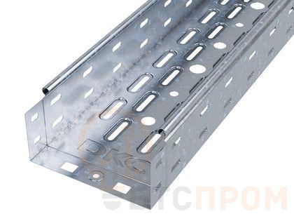 Перфорированные листовые лотки ДКС применяются для прокладки кабеля как в помещении, так и на открытом воздухе. Лотки отличаются высокой несущей способностью – подформовка, производимая при производстве этой продукции, создает дополнительное ребро жесткости, что увеличивает несущую способность системы до 54%. Перфорация сокращает вес конструкции. В лотках имеются отверстия для отвода кабеля. Степень пыле- и влагозащиты перфорированных лотков – IP 10 при использовании крышек, входящих в состав системы. Метод соединения "мама-папа" применяемый для системы, существенно сокращает время монтажа и создает непрерывный контур. Конструктив листовых лотков ДКС предупреждает повреждение кабеля при прокладке. Высота лотка – 100 мм, ширина – 150 мм, длина – 2000 мм, толщина - 0,7 мм. Лотки в специальном исполнении "Горячий цинк" отличаются повышенной стойкостью к коррозии и воздействию агрессивных сред.
