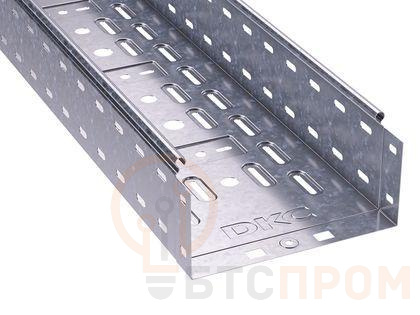 Перфорированные листовые лотки ДКС применяются для прокладки кабеля как в помещении, так и на открытом воздухе. Лотки отличаются высокой несущей способностью – подформовка, производимая при производстве этой продукции, создает дополнительное ребро жесткости, что увеличивает несущую способность системы до 54%. Перфорация сокращает вес конструкции. В лотках имеются отверстия для отвода кабеля диаметром 11 мм, 17 мм, 21 мм. Степень пыле- и влагозащиты перфорированных лотков – IP 10 при использовании крышек, входящих в состав системы. Метод соединения "мама-папа" применяемый для системы, существенно сокращает время монтажа и создает непрерывный контур. Конструктив листовых лотков ДКС предупреждает повреждение кабеля при прокладке. Толщина стали – 0,7 мм, высота лотка – 100 мм, ширина – 200 мм, длина – 2000 мм. Полезное сечение – 19700 мм. Перфорированные лотки в исполнении "Цинк-ламель" имеют специальное покрытие, устойчивое к коррозии из химически активной магниевой смолы с добавлением хлопьев цинка и алюминия. Цинк-ламельное покрытие изделий ДКС по коррозионной устойчивости аналогично покрытию "Горячий цинк". Оно обеспечивает электрохимическую и барьерную защиту от коррозии.