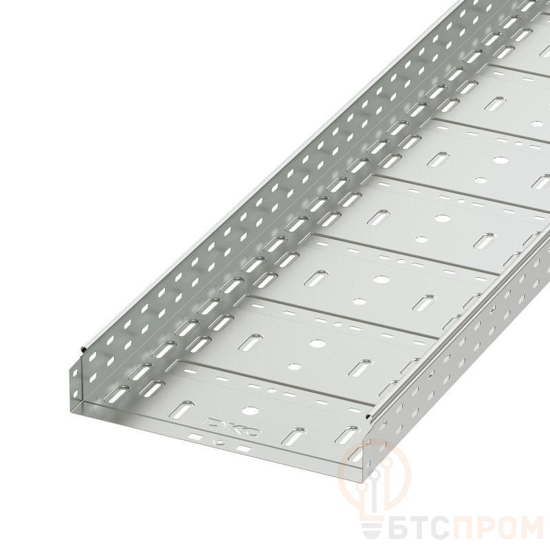 Перфорированные листовые лотки ДКС применяются для прокладки кабеля как в помещении, так и на открытом воздухе. Лотки отличаются высокой несущей способностью – подформовка, производимая при производстве этой продукции, создает дополнительное ребро жесткости, что увеличивает несущую способность системы до 54%. Перфорация сокращает вес конструкции. В лотках имеются отверстия для отвода кабеля диаметром 11 мм, 17 мм, 21 мм. Степень пыле- и влагозащиты перфорированных лотков – IP 10 при использовании крышек, входящих в состав системы. Метод соединения "мама-папа" применяемый для системы, существенно сокращает время монтажа и создает непрерывный контур. Конструктив листовых лотков ДКС предупреждает повреждение кабеля при прокладке. Толщина стали – 0,9 мм, высота лотка – 80 мм, ширина – 400 мм, длина – 2000 мм. Полезное сечение – 31500 мм. Перфорированные лотки в исполнении "Цинк-ламель" имеют специальное покрытие, устойчивое к коррозии из химически активной магниевой смолы с добавлением хлопьев цинка и алюминия. Цинк-ламельное покрытие изделий ДКС по коррозионной устойчивости аналогично покрытию "Горячий цинк". Оно обеспечивает электрохимическую и барьерную защиту от коррозии.
