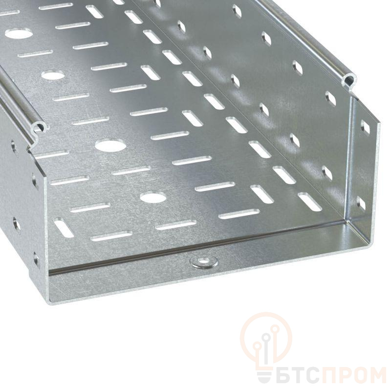 Перфорированные листовые лотки ДКС применяются для прокладки кабеля как в помещении, так и на открытом воздухе. Лотки отличаются высокой несущей способностью – подформовка, производимая при производстве этой продукции, создает дополнительное ребро жесткости, что увеличивает несущую способность системы до 54%. Перфорация сокращает вес конструкции. В лотках имеются отверстия для отвода кабеля. Степень пыле- и влагозащиты перфорированных лотков – IP 10 при использовании крышек, входящих в состав системы. Метод соединения "мама-папа" применяемый для системы, существенно сокращает время монтажа и создает непрерывный контур. Конструктив листовых лотков ДКС предупреждает повреждение кабеля при прокладке. Высота лотка – 100 мм, ширина – 600 мм, длина – 3000 мм, толщина - 1,2 мм. Перфорированные лотки в исполнении "Цинк-ламель" имеют специальное покрытие, устойчивое к коррозии из химически активной магниевой смолы с добавлением хлопьев цинка и алюминия. Цинк-ламельное покрытие изделий ДКС по коррозионной устойчивости аналогично покрытию "Горячий цинк". Оно обеспечивает электрохимическую и барьерную защиту от коррозии.