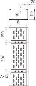 Лоток листовой перфорированный 600х110 L6000 сталь 2мм WKSG 160 FS OBO 6098127