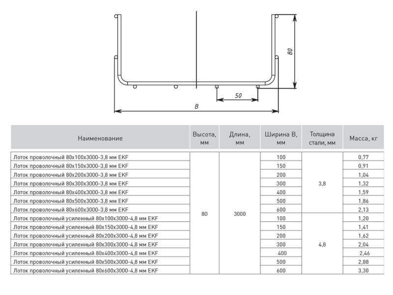 –Лоток проволочный 80х500 L3000 3.8мм INOX EKF LP80500-3.8-INOX