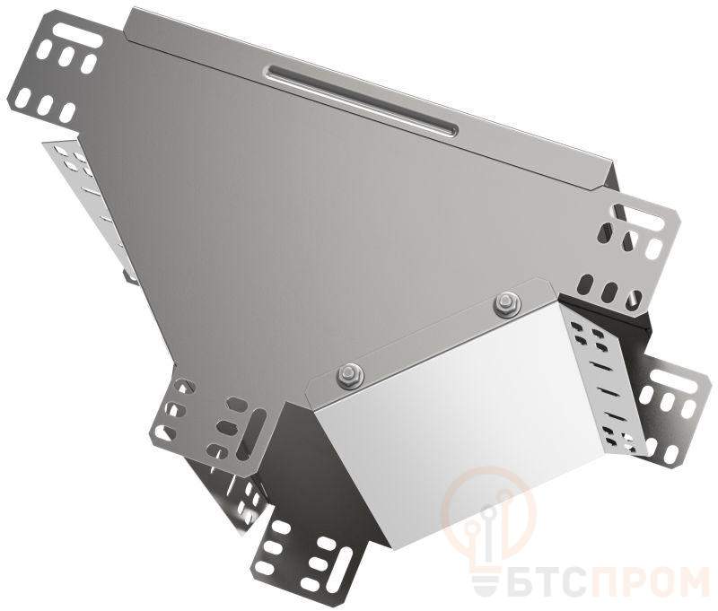 Ответвитель Т-образный вертикальный вниз предназначен для организации Т-образного отвода кабельной трассы вниз без изменения направления лотка. Аксессуар поставляется в комплекте с крышкой. Аксессуар изготовлен из стали горячего цинкования методом Сендзимира (защитный слой цинка не менее 10 мкм).