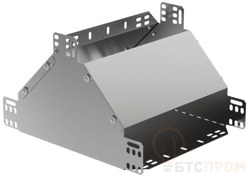 Ответвитель Т-образный вертикальный вверх предназначен для организации Т-образного отвода кабельной трассы вверх без изменения направления лотка. Аксессуар изготовлен из стали горячего цинкования методом Сендзимира (защитный слой цинка не менее 10 мкм).