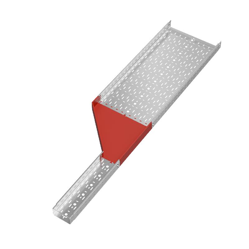 Входящий в линейку фасонных изделий для листовых лотков серии "PLUS" переходник левый используется для соединения между собой глухих и перфорированных лотков различной ширины при проектировании кабельных трасс. Элемент предназначен для перехода с металлического лотка шириной 150 мм на лоток шириной 500 мм. Изделие выполнено из стали оцинкованной по методу Сендзимира. Предназначено для применения в местах предпочтительно с сухим климатом, внутри помещений и в слабоагрессивных средах, в соответствии с ГОСТ 15150-69. Для защиты элемента кабельной трассы от внешних воздействий и механических повреждений рекомендуем использовать крышку серии "PLUS" для переходника левого, которая защелкивается без дополнительных приспособлений.