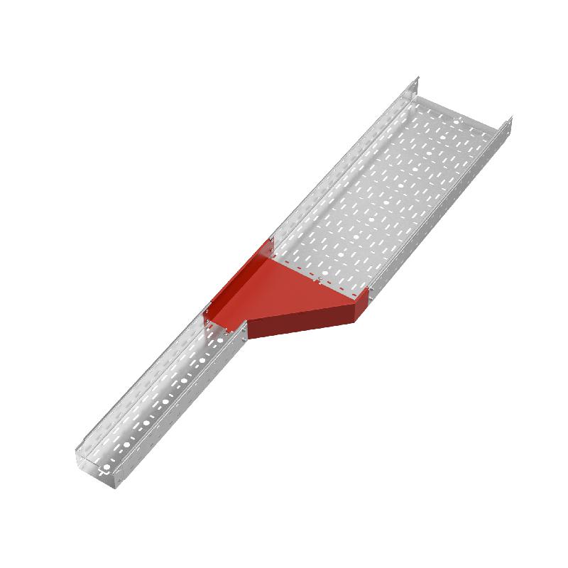 Переходник правый входит в линейку фасонных изделий для листовых лотков серии "PLUS". Используется для соединения между собой глухих и перфорированных лотков различной ширины при проектировании кабельных трасс. Элемент предназначен для перехода с металлического лотка шириной 150 мм на лоток шириной 400 мм. Изделие выполнено из стали оцинкованной по методу Сендзимира. Предназначено для применения в местах предпочтительно с сухим климатом, внутри помещений и в слабоагрессивных средах, в соответствии с ГОСТ 15150-69. Для защиты элемента кабельной трассы от внешних воздействий и механических повреждений рекомендуем использовать крышку серии "PLUS" для переходника, которая защелкивается без дополнительных приспособлений.