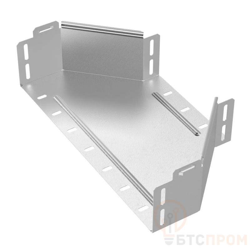Конструкция переходника является симметричной, что позволяет равномерно распределять нагрузку и обеспечивать удобный монтаж. В комплектацию входит плотно прилегающая крышка, которая защищает внутреннее пространство лотка от пыли, влаги и посторонних предметов, повышая долговечность и безопасность проложенных кабелей.