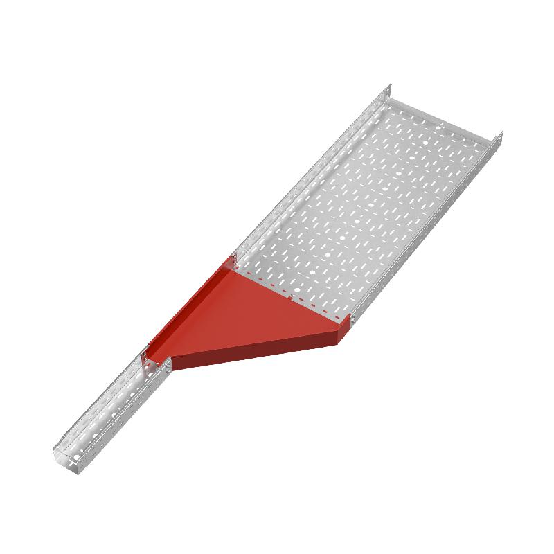 Переходник правый входит в линейку фасонных изделий для листовых лотков серии "PLUS". Используется для соединения между собой глухих и перфорированных лотков различной ширины при проектировании кабельных трасс. Изделие предназначено для перехода с металлического лотка шириной 100 мм на лоток шириной 500 мм. Элемент оцинкован методом горячего погружения согласно ГОСТ 9.307-89 и используется для монтажа в помещениях с высокой влажностью и низкой загрязненностью, под открытым небом и в слабокоррозийной среде, в соответствии с ГОСТ 15150-69. Для защиты элемента кабельной трассы от внешних воздействий и механических повреждений рекомендуем использовать крышку серии "PLUS" для переходника, которая защелкивается без дополнительных приспособлений.