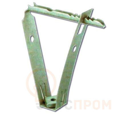 Крепление для профнастила имеет трепецевидную форму. Это изделие предназначено для подвешивания монтажных систем и элементов к волне профнастила. Для фиксации применяются шпильки М10.