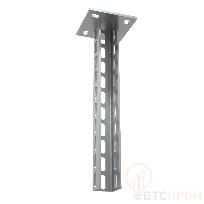 Серия элементов на основе п-образного профиля с приваренным на торце основанием, для крепления металлических лотков к несущей поверхности на любой высоте. Конфигурация изделий придаёт конструкции дополнительную жесткость и прочность. Стойка потолочная тяжелая с тройной перфорацией применяется для потолочного или напольного крепления кабельной трассы. Элемент выполнен из стали и оцинкован методом горячего погружения согласно ГОСТ 9.307-89. Используется для монтажа в помещениях с высокой влажностью и низкой загрязненностью, под открытым небом и в слабокоррозийной среде, в соответствии с ГОСТ 15150-69.