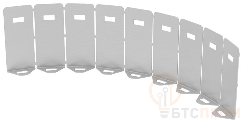 Перегородка предназначена для разделения фасонной секции на две и более части, в случае монтажа проводки разного типа (информационной и силовой) для исключения наводок. Совместимость только с радиусными горизонтальными поворотами 90 и 45 градусов серии ESCA 5.