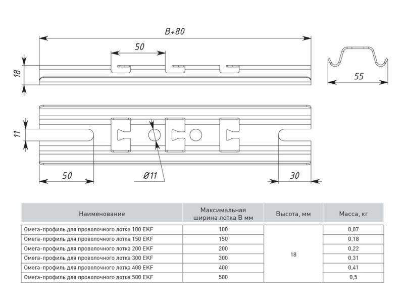 Профиль Омега для проволочного лотка осн.200 нерж. сталь INOX EKF ompp200-INOX фото в каталоге от BTSprom.by