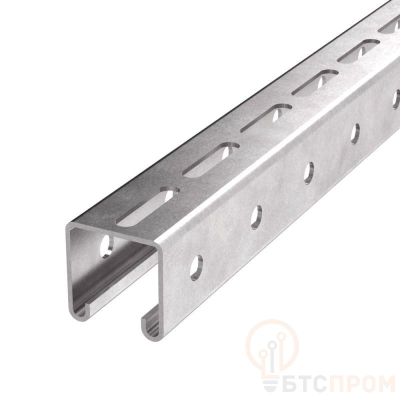 Это опорно-несущий элемент конструкции. Его особый профиль значительно увеличивает прочностные характеристики в отличие от обычного П-образного профиля. При применении специальных "канальных гаек" время монтажа конструкций сокращается в разы.