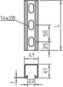 Рейка монтаж. 3000x41x41 MS 41 L 3M FS (дл.3м) OBO 1122910 – элемент несущей конструкции. Габариты: 41 х 21 х 3000 мм. Перфорирован по основанию. Размер отверстий 14 х 28 мм. Стальной, из стали толщиной 2,5 мм.