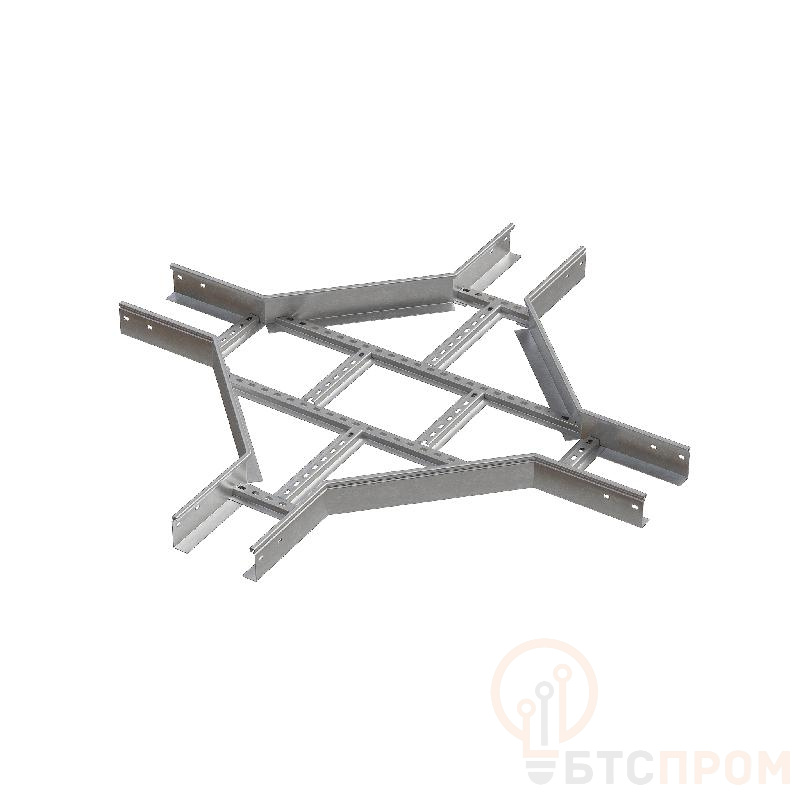 Создавать кабеленесущие конструкции любой степени сложности позволяет конструктив х-разветвителя для лестничного лотка. Фасонная секция применяется для ответвления кабельной трассы при монтаже одновременно во все стороны. Изделие оцинковано методом горячего погружения согласно ГОСТ 9.307-89 и используется для монтажа в помещениях с высокой влажностью и низкой загрязненностью, под открытым небом и в слабокоррозийной среде, в соответствии с ГОСТ 15150-69. Соединение между секциями происходит с использованием подходящих крепежных элементов. Для дополнительной защиты элемента кабельной трассы от механических повреждений, попадания пыли и мусора, используйте крышку.