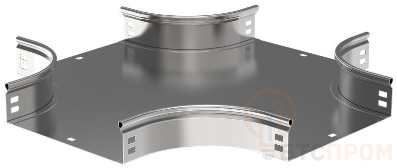 Крестовина плавная предназначена для организации X-образного ответвления кабельной трассы. Крышка аксессуара в комплект не входит. Аксессуар изготовлен из стали горячего цинкования методом Сендзимира (защитный слой цинка не менее 10 мкм).