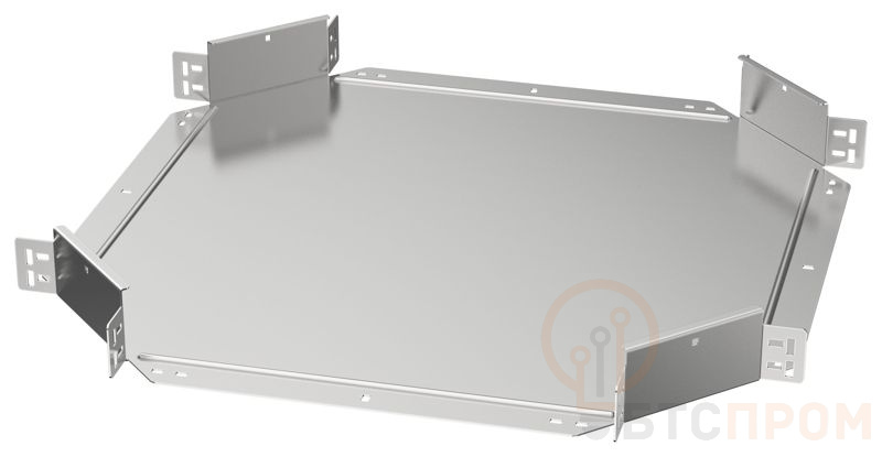 Крестовина предназначена для организации X-образного разветвления кабельной трассы в горизонтальной плоскости. Стыковка аксессуара с лотком осуществляется за счёт телескопического соединителя. Подходит для всех типов листовых лотков серии ESCA. Крышка на аксессуар заказывается отдельно. Аксессуар изготовлен из стали оцинкованной методом Сендзимира (защитный слой цинка не менее 5-10 мкм).