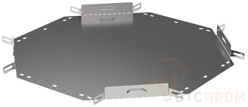Крестовина предназначен для организации X-образного разветвления кабельной трассы в горизонтальной плоскости. Аксессуар поставляется в плоском виде, имеет направляющую перфорацию для сгиба и сборки изделия перед установкой. Стыковка аксессуара с лотком осуществляется за счёт телескопического соединителя. Подходит для всех типов листовых лотков серии ESCA. Крышка на аксессуар заказывается отдельно. Аксессуар изготовлен из стали оцинкованной методом Сендзимира (защитный слой цинка не менее 5-10 мкм).