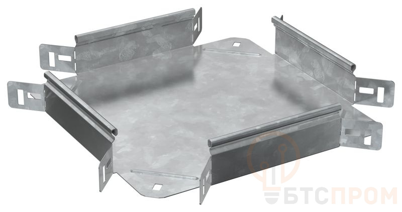 Конструкция ответвителя позволяет организовать отвод кабельной линии под прямым углом без использования инструмента, сохраняя целостность и защитные свойства лотка. Элемент совместим с лотками соответствующих типоразмеров, обеспечивая аккуратный и профессиональный монтаж.