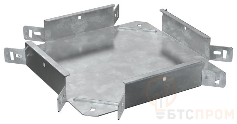 Крестовина предназначен для организации X-образного разветвления кабельной трассы в горизонтальной плоскости. Стыковка аксессуара с лотком осуществляется за счёт телескопического соединителя. Подходит для всех типов листовых лотков серии ESCA. Крышка на аксессуар заказывается отдельно. Аксессуар изготовлен из стали оцинкованной методом горячего погружения (защитный слой цинка не менее 55 мкм).