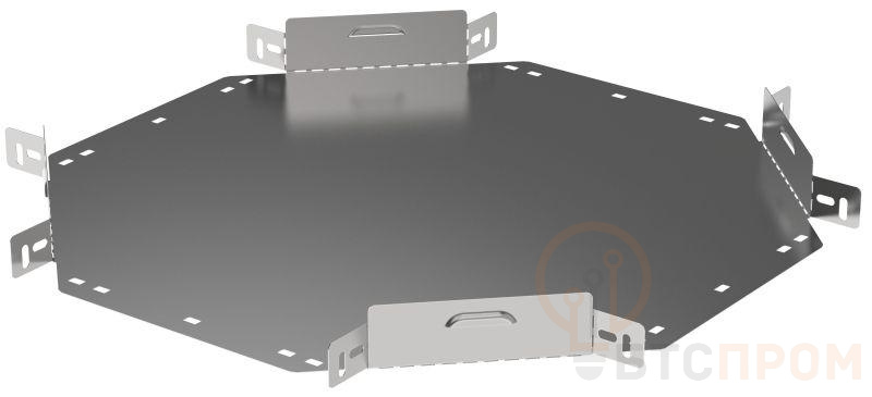 Крестовина предназначен для организации X-образного разветвления кабельной трассы в горизонтальной плоскости. Аксессуар поставляется в плоском виде, имеет направляющую перфорацию для сгиба и сборки изделия перед установкой. Стыковка аксессуара с лотком осуществляется за счёт телескопического соединителя. Подходит для всех типов листовых лотков серии ESCA. Крышка на аксессуар заказывается отдельно. Аксессуар изготовлен из стали оцинкованной методом Сендзимира (защитный слой цинка не менее 5-10 мкм).