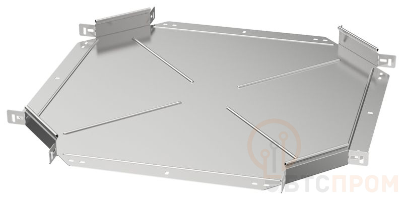 Крестовина предназначена для организации X-образного разветвления кабельной трассы в горизонтальной плоскости. Стыковка аксессуара с лотком осуществляется за счёт телескопического соединителя. Подходит для всех типов листовых лотков серии ESCA. Крышка на аксессуар заказывается отдельно. Аксессуар изготовлен из стали оцинкованной методом Сендзимира (защитный слой цинка не менее 5-10 мкм).
