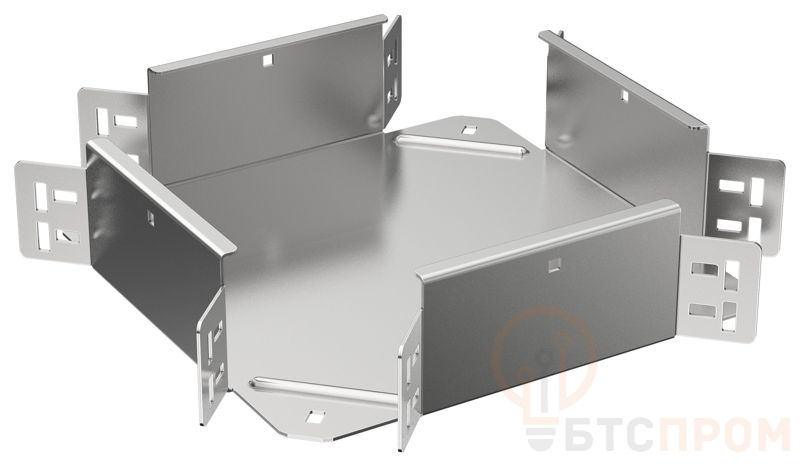 Крестовина предназначена для организации X-образного разветвления кабельной трассы в горизонтальной плоскости. Стыковка аксессуара с лотком осуществляется за счёт телескопического соединителя. Подходит для всех типов листовых лотков серии ESCA. Крышка на аксессуар заказывается отдельно. Аксессуар изготовлен из стали оцинкованной методом Сендзимира (защитный слой цинка не менее 5-10 мкм).