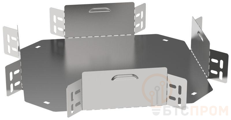 Крестовина предназначен для организации X-образного разветвления кабельной трассы в горизонтальной плоскости. Аксессуар поставляется в плоском виде, имеет направляющую перфорацию для сгиба и сборки изделия перед установкой. Стыковка аксессуара с лотком осуществляется за счёт телескопического соединителя. Подходит для всех типов листовых лотков серии ESCA. Крышка на аксессуар заказывается отдельно. Аксессуар изготовлен из стали оцинкованной методом Сендзимира (защитный слой цинка не менее 5-10 мкм).