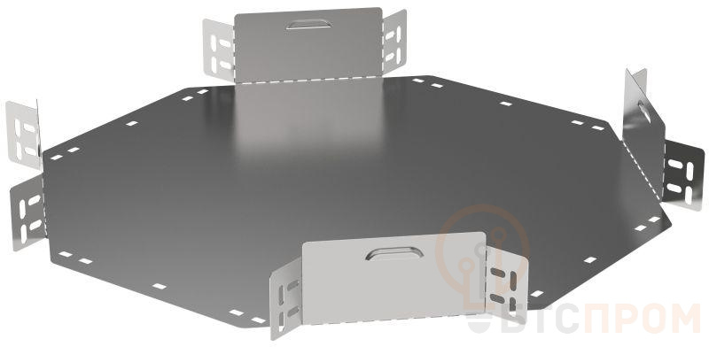 Крестовина предназначен для организации X-образного разветвления кабельной трассы в горизонтальной плоскости. Аксессуар поставляется в плоском виде, имеет направляющую перфорацию для сгиба и сборки изделия перед установкой. Стыковка аксессуара с лотком осуществляется за счёт телескопического соединителя. Подходит для всех типов листовых лотков серии ESCA. Крышка на аксессуар заказывается отдельно. Аксессуар изготовлен из стали оцинкованной методом Сендзимира (защитный слой цинка не менее 5-10 мкм).