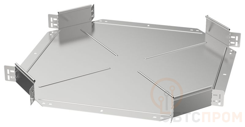 Крестовина предназначена для организации X-образного разветвления кабельной трассы в горизонтальной плоскости. Стыковка аксессуара с лотком осуществляется за счёт телескопического соединителя. Подходит для всех типов листовых лотков серии ESCA. Крышка на аксессуар заказывается отдельно. Аксессуар изготовлен из стали оцинкованной методом Сендзимира (защитный слой цинка не менее 5-10 мкм).
