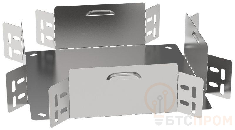 Крестовина предназначен для организации X-образного разветвления кабельной трассы в горизонтальной плоскости. Аксессуар поставляется в плоском виде, имеет направляющую перфорацию для сгиба и сборки изделия перед установкой. Стыковка аксессуара с лотком осуществляется за счёт телескопического соединителя. Подходит для всех типов листовых лотков серии ESCA. Крышка на аксессуар заказывается отдельно. Аксессуар изготовлен из стали оцинкованной методом Сендзимира (защитный слой цинка не менее 5-10 мкм).