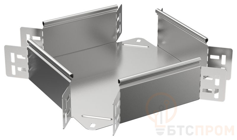 Конструкция ответвителя позволяет выполнять соединение под углом 90 градусов, обеспечивая аккуратную и плотную стыковку лотков. Монтаж осуществляется с помощью стандартного крепежа, что значительно ускоряет процесс сборки трассы. Изделие соответствует требованиям ТНПА и подходит для организации кабельных систем в промышленных и коммерческих зданиях, офисных центрах, торговых комплексах и на объектах инфраструктуры.