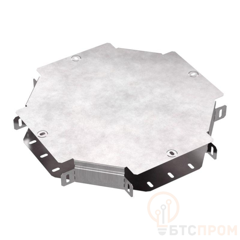 Аксессуары изготовленные из стали с защитным покрытием по методу Сендзимира – это изделия, на которых защитное цинковое покрытие было нанесено на листовую сталь перед изготовлением. Толщина защитного покрытия варьируется от 10 до 22мкм. Климатическое исполнение изделий УХЛ2, что предусматривают эксплуатацию в помещении и под навесом, при температуре эксплуатации от -80 до +150°С. Ответвитель X-образный предназначен для разветвления кабельных трасс в горизонтальном направлении, для перфорированных и глухих лотков. В комплект входит крышка.