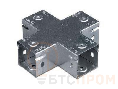 Данный аксессуар имеет Х-образную форму и необходим для организации поворотов и ответвлений в горизонтальной плоскости. Применяется в особенных случаях, когда, например, лоток используется в качестве настенного кабель-канала, или при обвязке оборудования. Конструкция элемента предотвращает возможное повреждение кабеля. Исполнение – "сталь, оцинкованная по методу Сендзимира". Высота – 50 мм, ширина – 50 мм.