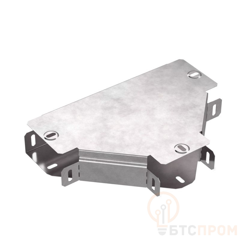 Аксессуары изготовленные из стали с защитным покрытием по методу Сендзимира – это изделия, на которых защитное цинковое покрытие было нанесено на листовую сталь перед изготовлением. Толщина защитного покрытия варьируется от 10 до 22мкм. Климатическое исполнение изделий УХЛ2, что предусматривают эксплуатацию в помещении и под навесом, при температуре эксплуатации от -80 до +150°С. Т-образный ответвитель предназначен для разветвления кабельных трасс в горизонтальном направлении, для перфорированных и глухих лотков. В комплект входит крышка.