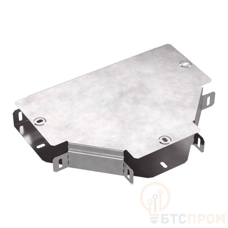 Аксессуары изготовленные из стали с защитным покрытием по методу Сендзимира – это изделия, на которых защитное цинковое покрытие было нанесено на листовую сталь перед изготовлением. Толщина защитного покрытия варьируется от 10 до 22мкм. Климатическое исполнение изделий УХЛ2, что предусматривают эксплуатацию в помещении и под навесом, при температуре эксплуатации от -80 до +150°С. Т-образный ответвитель предназначен для разветвления кабельных трасс в горизонтальном направлении,для перфорированных и глухих лотков. В комплект входит крышка.