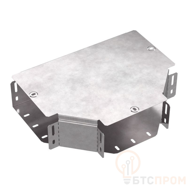 Аксессуары изготовленные из стали с защитным покрытием по методу Сендзимира – это изделия, на которых защитное цинковое покрытие было нанесено на листовую сталь перед изготовлением. Толщина защитного покрытия варьируется от 10 до 22мкм. Климатическое исполнение изделий УХЛ2, что предусматривают эксплуатацию в помещении и под навесом, при температуре эксплуатации от -80 до +150°С. Т-образный ответвитель предназначен для разветвления кабельных трасс в горизонтальном направлении,для перфорированных и глухих лотков. В комплект входит крышка.