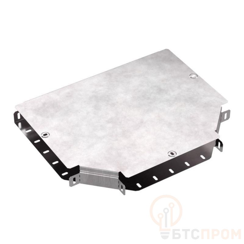 Аксессуары изготовленные из стали с защитным покрытием по методу Сендзимира – это изделия, на которых защитное цинковое покрытие было нанесено на листовую сталь перед изготовлением. Толщина защитного покрытия варьируется от 10 до 22мкм. Климатическое исполнение изделий УХЛ2, что предусматривают эксплуатацию в помещении и под навесом, при температуре эксплуатации от -80 до +150°С. Т-образный ответвитель предназначен для разветвления кабельных трасс в горизонтальном направлении,для перфорированных и глухих лотков. В комплект входит крышка.