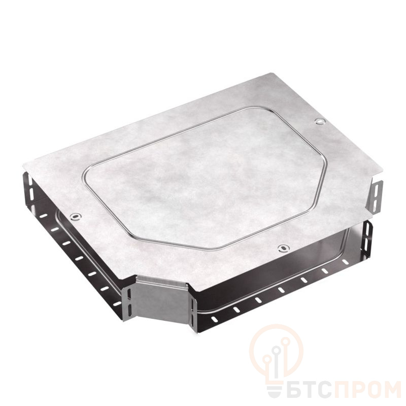 Конструкция ответвителя включает в себя штампованную крышку, которая надежно фиксируется и защищает кабели от внешних воздействий, пыли и случайных повреждений. Стандартная перфорация с шагом 50 мм обеспечивает удобство и быстроту монтажа, а также совместимость с широким спектром стандартных аксессуаров для кабельных лотков. Все элементы имеют цинковое покрытие, обеспечивающее эффективную антикоррозионную защиту.