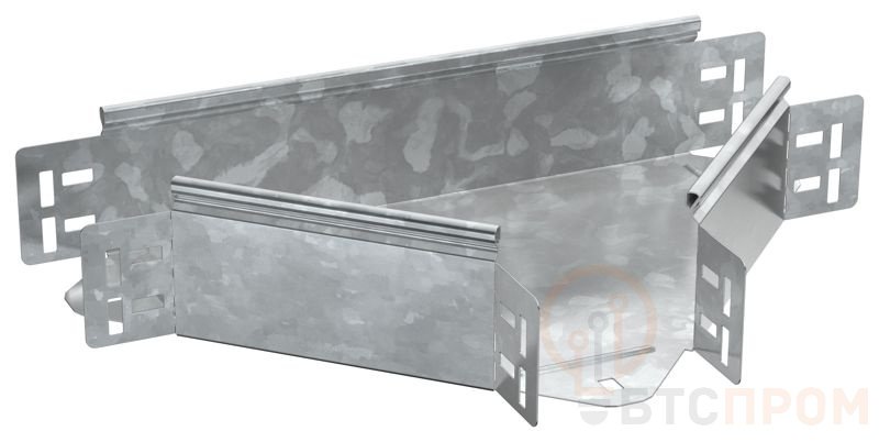 Геометрические параметры: ширина полки 80 мм и высота борта 100 мм, что соответствует стандартным размерам лотков. Т-образная конструкция позволяет выполнять ответвление под углом 90 градусов, обеспечивая аккуратную и технологичную разводку кабельных линий. Монтаж осуществляется легко и быстро благодаря совместимости с элементами системы ESCA 5.