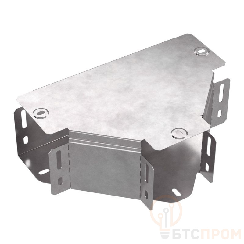 Стандартные размеры 100х100 мм делают ответвитель совместимым с большинством типов лотков, что упрощает проектирование и монтаж. Благодаря цинковому покрытию, изделие обладает повышенной коррозионной стойкостью, что позволяет использовать его в помещениях с нормальным и умеренным уровнем влажности.