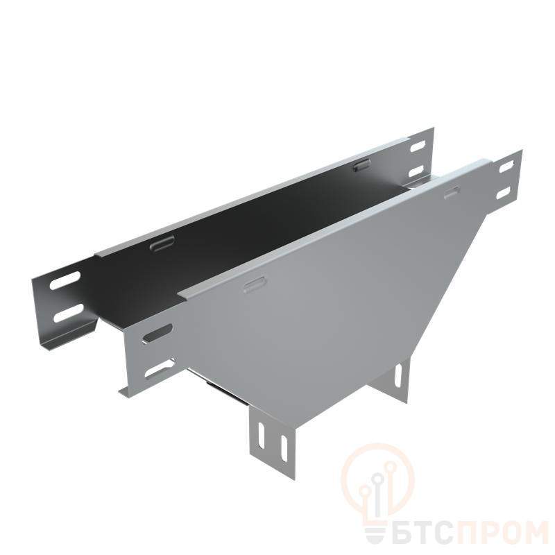 Т-ответвитель переходник вертикальный c разворотом трассы на 90 градусов БАЗОВОЙ СЕРИИ, в конструкции которого нижняя часть больше исходной, используется для отвода трассы вниз, при этом разворачивая открытую часть лотка вокруг своей оси под прямым углом. Применяется для организации плавных поворотов и позволяет осуществить переход трассы с исходной ширины лотка 150 мм на ширину 400 мм. Изделие выполнено из стали оцинкованной по методу Сендзимира. Предназначено для применения в местах предпочтительно с сухим климатом, внутри помещений и в слабоагрессивных средах, в соответствии с ГОСТ 15150-69. Элемент предупреждает повреждение кабеля при прокладке и позволяет рационально использовать внутренний объем.