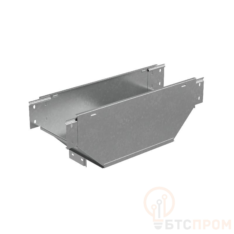 Т-ответвитель переходник вертикальный c разворотом трассы на 90 градусов серии "PLUS", в конструкции которого нижняя часть больше исходной, используется для отвода трассы вниз, при этом разворачивая открытую часть лотка вокруг своей оси под прямым углом. Применяется для организации плавных поворотов и позволяет осуществить переход трассы с исходной ширины лотка 100 мм на ширину 500 мм. Элемент выполнен из нержавеющей стали марки AISI304 – материала устойчивого к коррозии, высоким температурам и агрессивным средам. Используется на предприятиях пищевой и медицинской промышленности, химических заводах, в морских и прибрежных зонах, в соответствии с ГОСТ 15150-69. Изделие предупреждает повреждение кабеля при прокладке и позволяет рационально использовать внутренний объем.